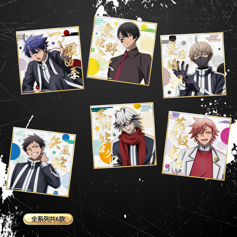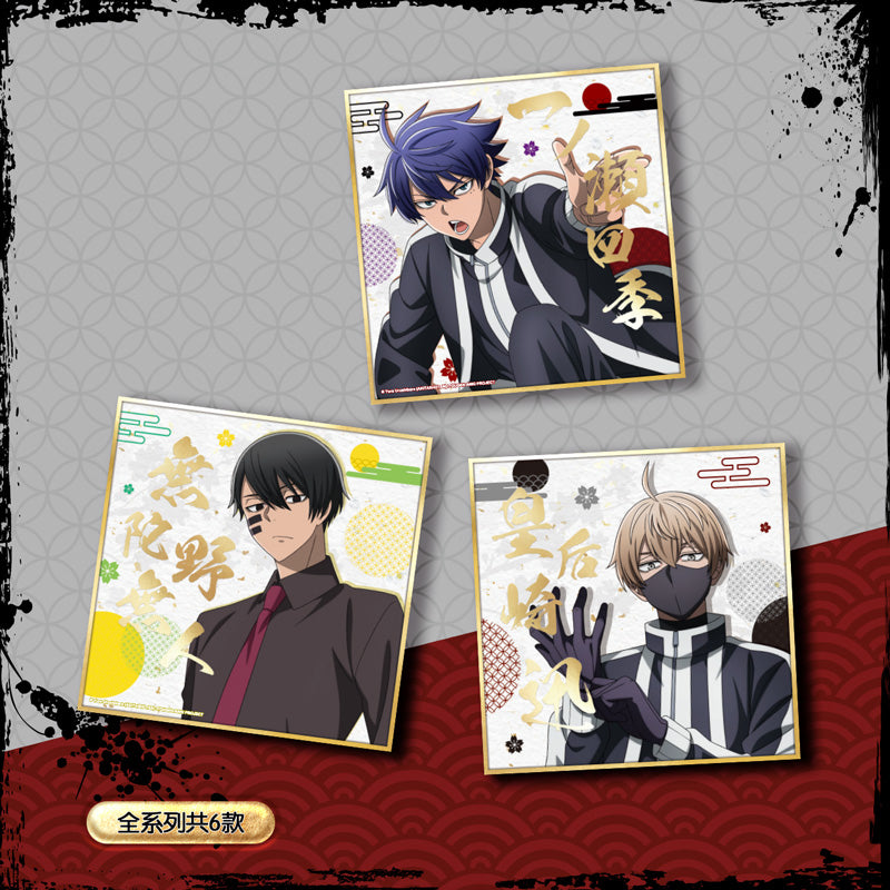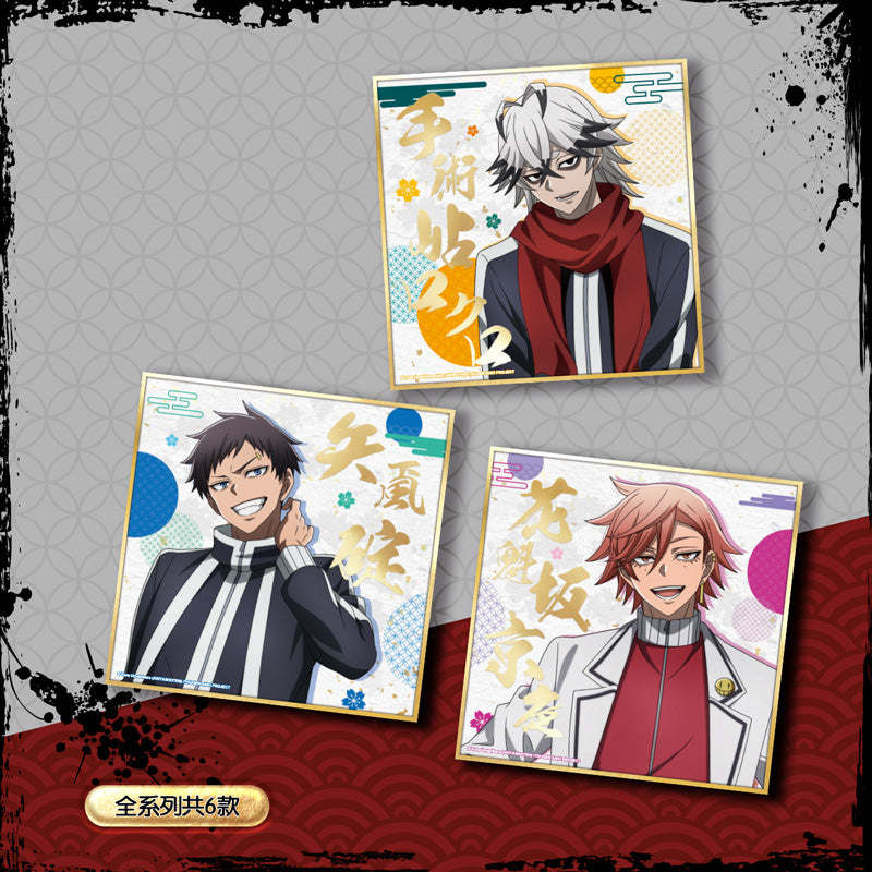 Each collectible features a beautifully printed character card with elegant gold foil detailing, showcasing iconic heroes like Shiki Ichinose, Jin Kougasaki, Naito Mudano, and Kyōya Oiranzaka.